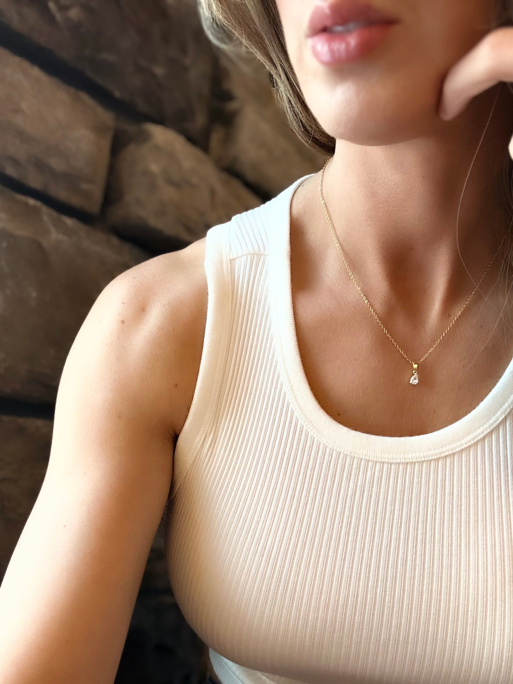 Elevate your style effortlessly with this 18K Vermeil Terdrop-Cut Pendant, a perfect blend of modern design and classic luxury.