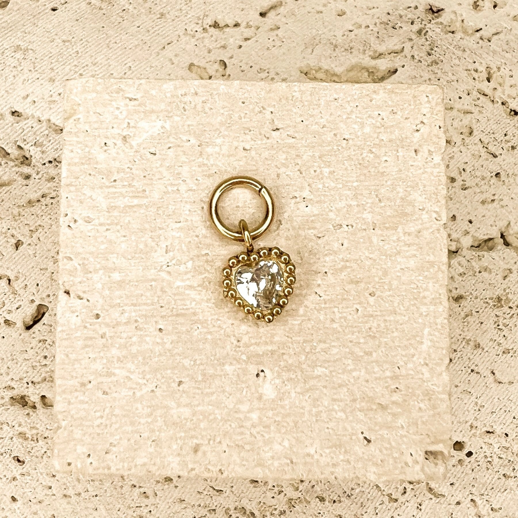 This delicate 18k vermeil heart pendant is a charming symbol of love and elegance. Featuring a sparkling heart-shaped stone at its center, framed by a finely detailed gold border, this pendant captures light beautifully, adding a touch of sophistication to any outfit. Its petite size makes it perfect for layering with other necklaces or wearing alone for a minimalist look. Ideal as a romantic gift or a personal token of affection, this heart pendant is a timeless piece that complements any jewelry collection.
