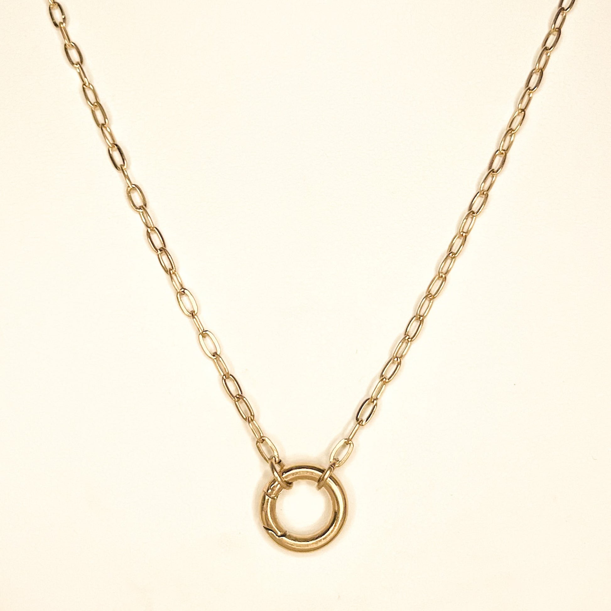 Introducing our 18k Gold Vermeil Paperclip Clasp Chain – a versatile, elegant piece designed for the modern minimalist. This 18" chain features sleek paperclip links that create a refined, elongated look, offering a timeless style that effortlessly elevates any outfit. Made from high-quality 18k gold vermeil, the chain is both durable and luxurious, providing a beautiful luster that lasts. The bold circular clasp at the center not only adds a unique aesthetic touch but also allows for easy attachment of your favorite charms or pendants. Perfect as a standalone statement or layered with other pieces, this chain is the ultimate accessory for any jewelry collection.