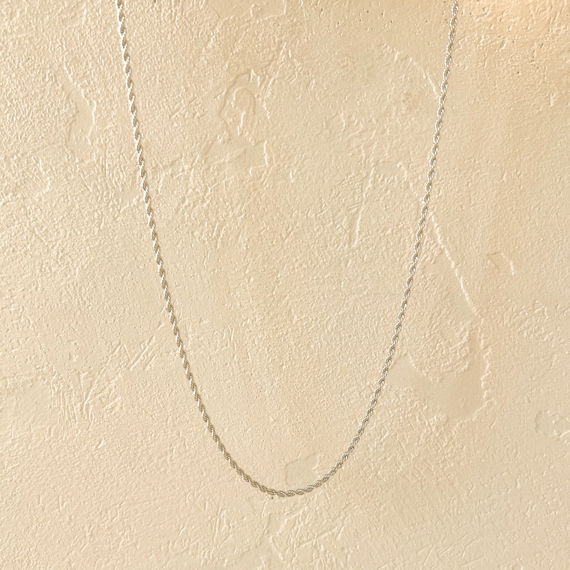 This elegant white gold–plated chain features a delicate rope-style twist that catches the light beautifully from every angle. Minimalist yet refined, it offers a subtle shimmer that elevates any look—perfect for layering or wearing on its own. Crafted with a smooth, lightweight feel, the chain drapes naturally and comfortably along the neckline. Its timeless design makes it a versatile accessory suited for both everyday wear and special occasions.