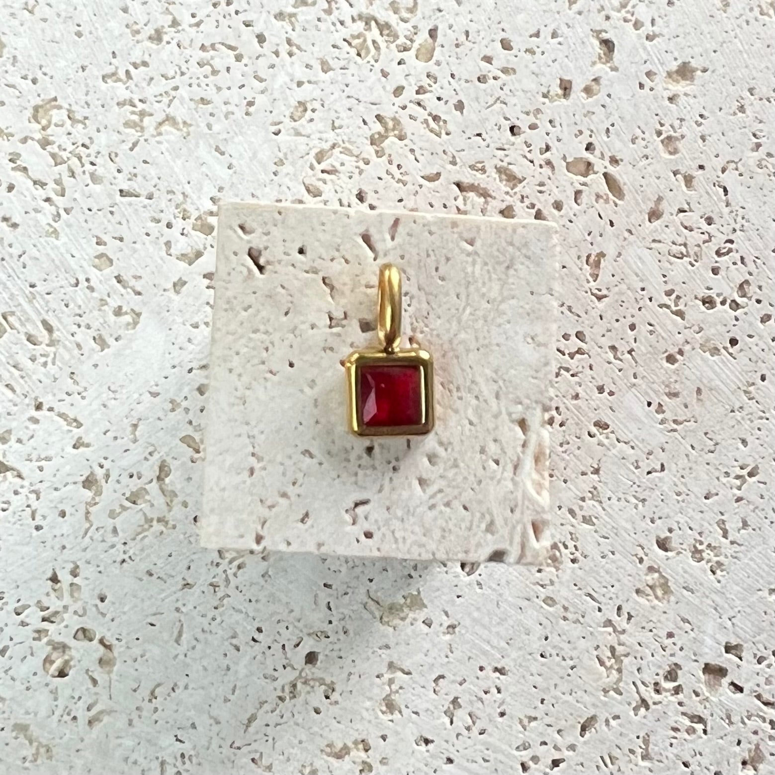 Minimalist Square Ruby Pendant in Gold – Timeless Birthstone Jewelry